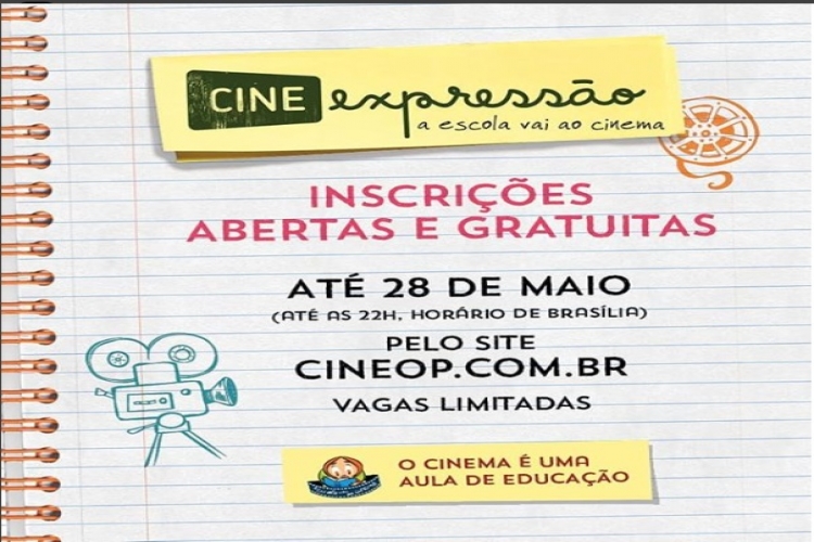 A 13ª CineOP – Mostra de Cinema de Ouro Preto, que acontece de 13 a 18 de junho, em Ouro Preto, está com inscrições abertas e gratuitas para o Cine-Expressão - A Escola vai ao Cinema. O programa oferece uma agenda que une as linguagens cinema e educação direcionada aos estudantes e educadores, com a oferta de sessões cine-escola, seguidas de cine-debates para crianças a partir de cinco anos de idade.